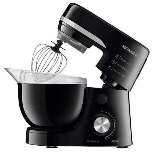 700W de potência: mais potência para preparar diversos tipos de massas, pães, cremes, chantilly e claras em neve