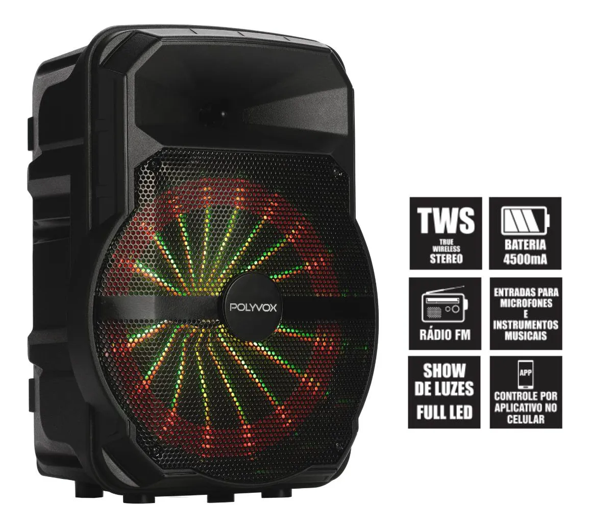 CAIXA DE SOM POLYVOX BT 300W 2 MICROFONE S/FIO PR